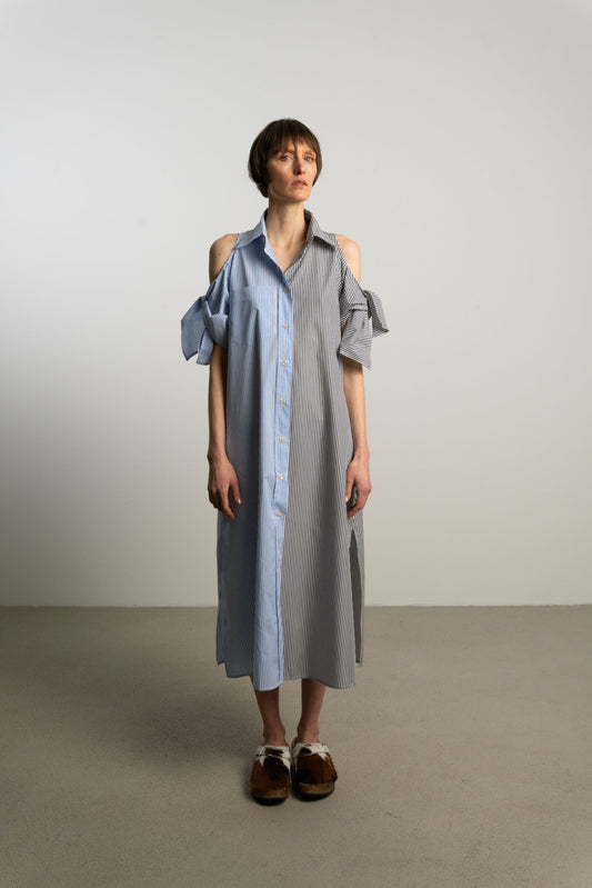 Open Shoulder Bow Dress BLUBBA / twin stripe