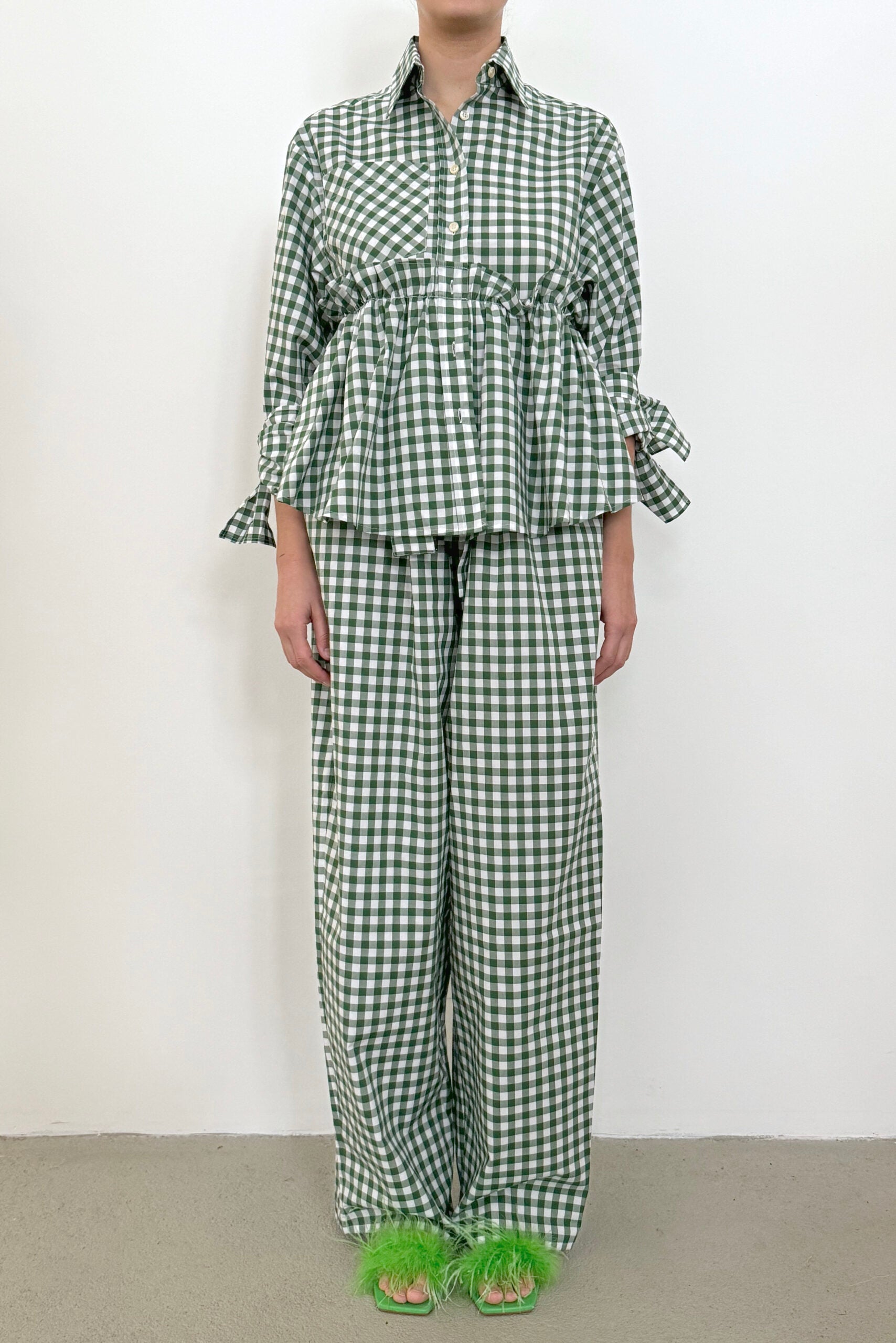 Bow Sleeve Ruffle Shirt SLICE / leaf vichy