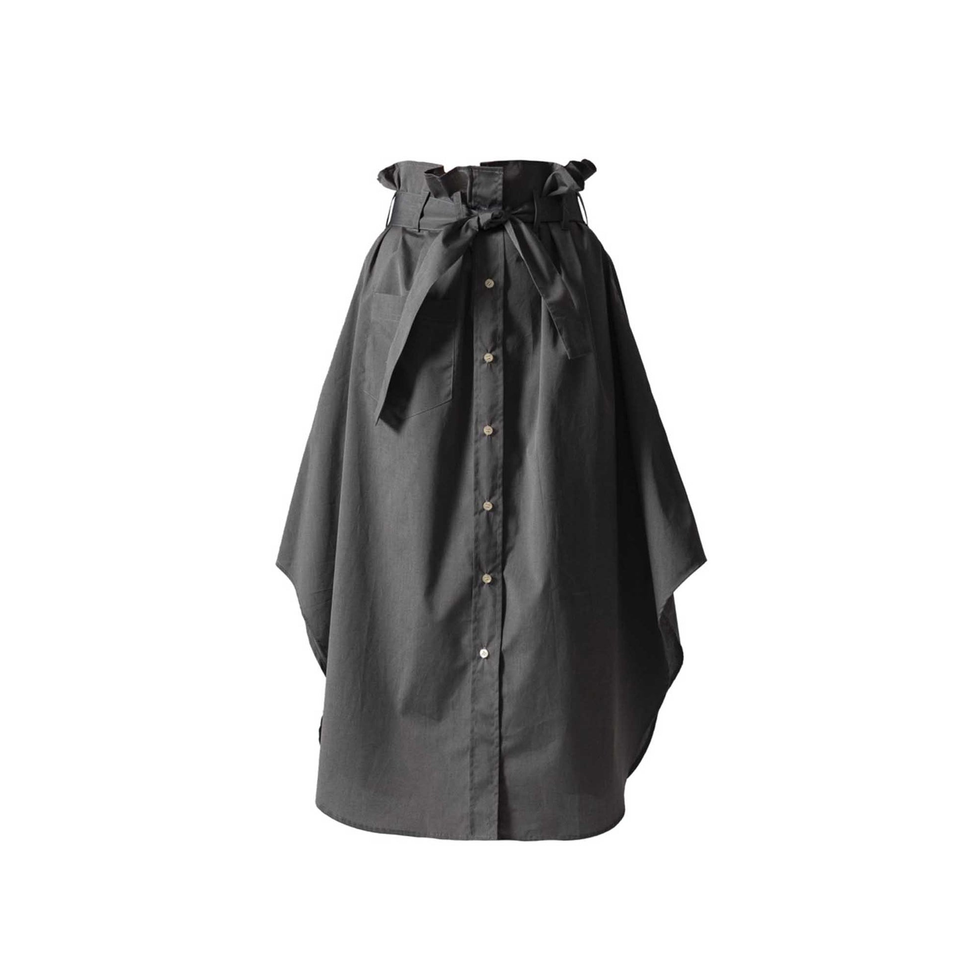 shirt shaped skirt, onesize, adjustable with belt, side seam pockets, shirt pocket at front, functional button rows on front and back, french seam finishing